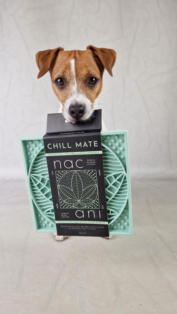 Unsere CHILL MATE Schleckmatte ist ein echtes Highlight für Hunde jeder Größe. Sie überzeugt nicht nur durch ihr cooles Design in Hanfblatt-Optik (das haben wir übrigens 100 % selbst designt!), sondern sorgt mit ihren drei unterschiedlichen Strukturen und Tiefen für maximalen Schleckspaß. Du kannst sie ohne Probleme einfrieren oder auch zum Backen verwenden. Darüber hinaus ist sie auch noch mikrowellen- und spülmaschinenfest – ein echter Allrounder also – hergestellt aus 100 % Silikon nach LFGB-Standard, frei von BPA, PVC & Phthalaten.