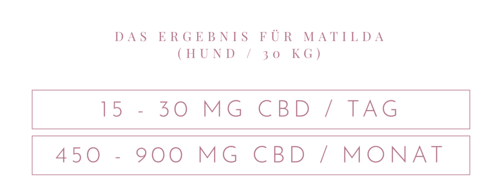 • Mischling mit einem Körpergewicht von 15 kg – 7,5 bis 15 mg CBD pro Tag