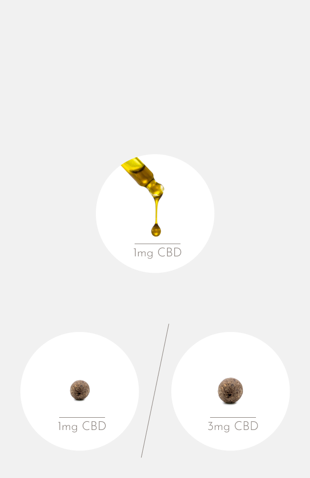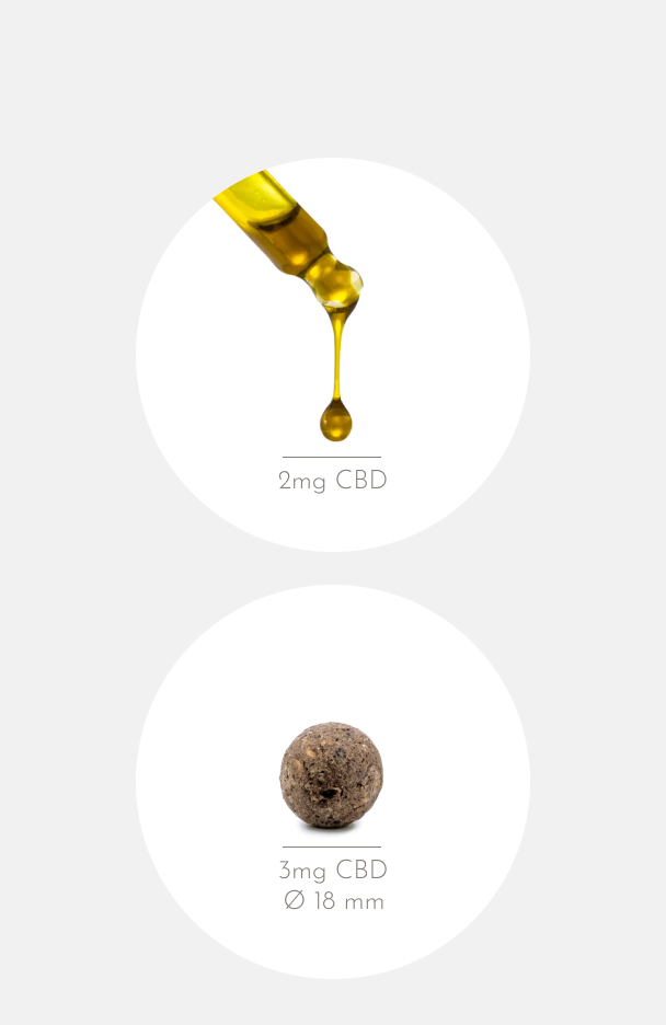 • 2,8 % Öl: 1mg CBD / Tropfen - ideal für kleinere Hunde